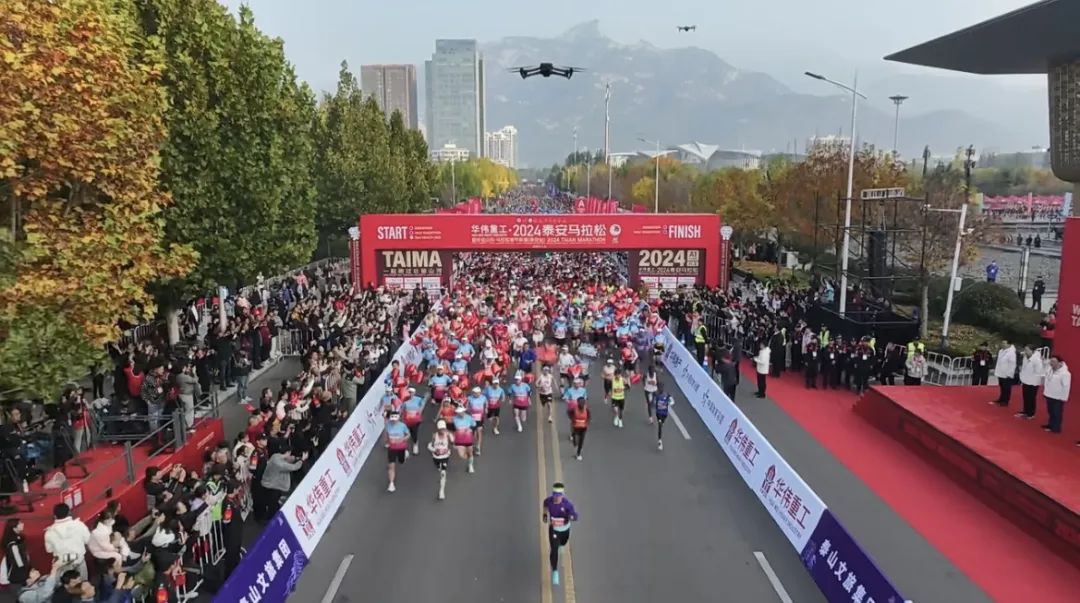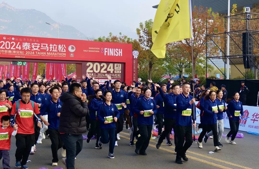 11月3日上午,2024泰安馬拉松暨好運山東·馬拉松城市聯(lián)賽(泰安站)在泰山國際會展中心鳴槍起跑,22000余名跑者相約泰安,一起跑過壯麗山河。泰山文旅集團作為唯一頂級贊助商,集團機關(guān)與各子公司組成100人的文旅方陣,助力賽事成功舉辦。隨著發(fā)令聲響起,整個城市仿佛被瞬間點燃。選手們蓄勢出發(fā),精神抖擻,斗志昂揚。賽道兩旁,觀眾揮舞著彩旗,為跑者們加油助威。